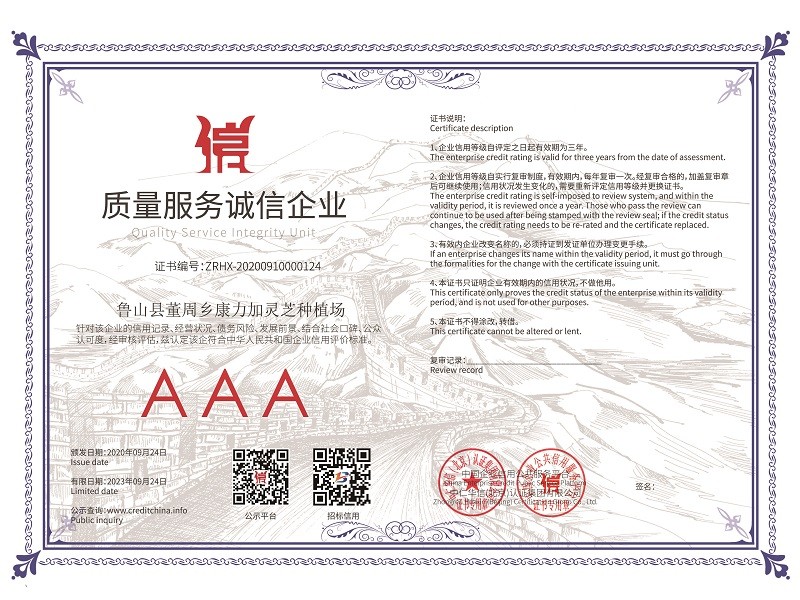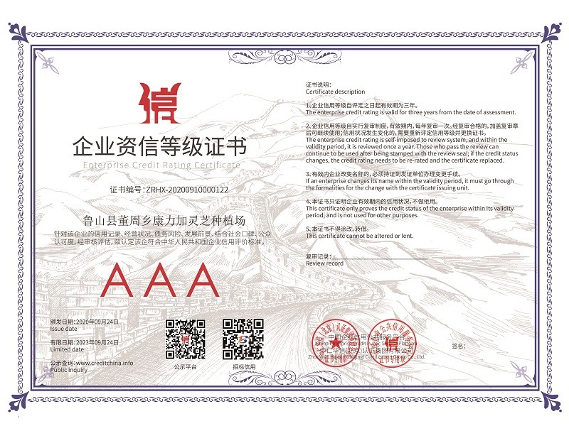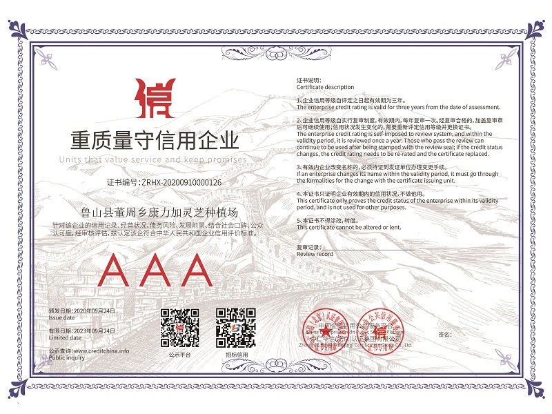 2020年國家又精準扶貧建了28個標準種植大棚,又自建了60個大棚,靈芝孢子粉的產量有望翻倍增加,產量和產值的雙倍增加,相信2023年康力加靈芝種植場會錦上添花,更上一層樓。康力加的經營理念“質量第一、信譽至上、客戶最高”愿我們的合作共贏,給人們一個健康體魄!